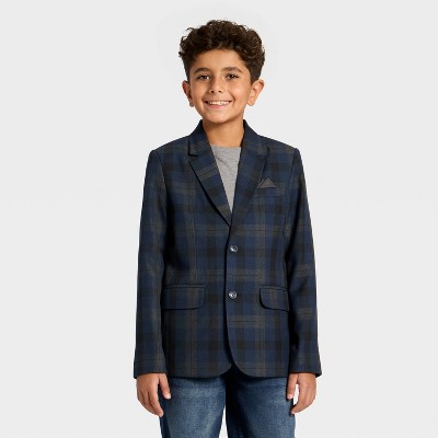 Boys' Holiday Plaid Suit Jacket - Cat & Jack™ Navy Blue