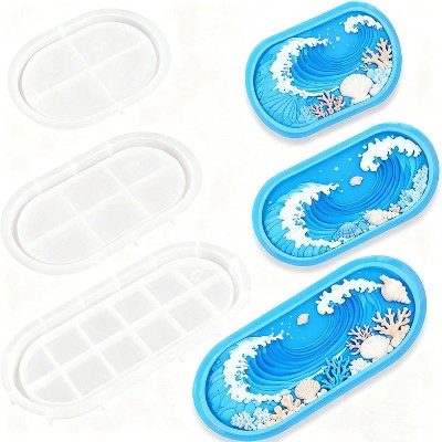 JDICTION 3Pcs Silicone Molds for Resin Casting Tray Molds Oval Resin Molds Silicone Pallet Round Molds