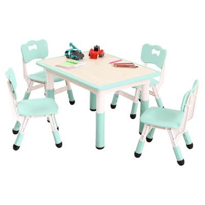 Kids Table and Chairs Set, Toddler Height Adjustable Desk with Graffiti Desktop, 4 Seats