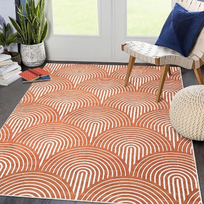 Washable Area Rug – Modern Scalloped Low Pile Carpet for Living Room, Bedroom, Nursery (Cream, 1-Piece)
