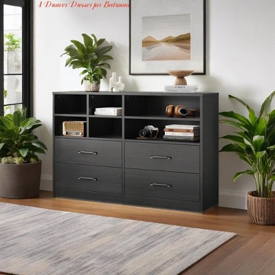 47.2" Tall Fluted Dresser, 5 Deep Drawers, Faux Marble Top, Curved Profile, Modern Chest for Bedroom/Living/Kids