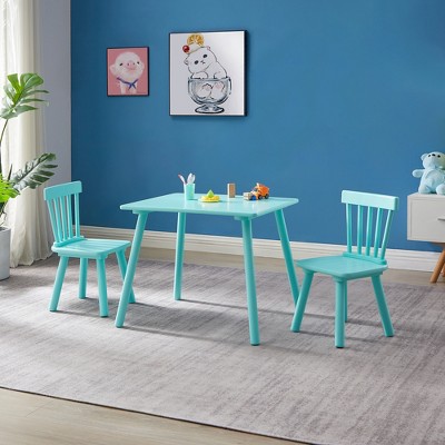 Kids Table and Chairs Set, Toddler Height Adjustable Desk with Graffiti Desktop, 4 Seats