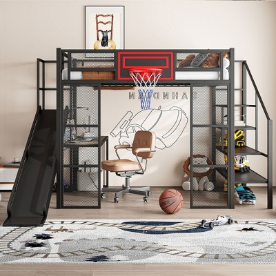Whisen Full Size Loft Bed with Desk, Shelves & Storage Staircase