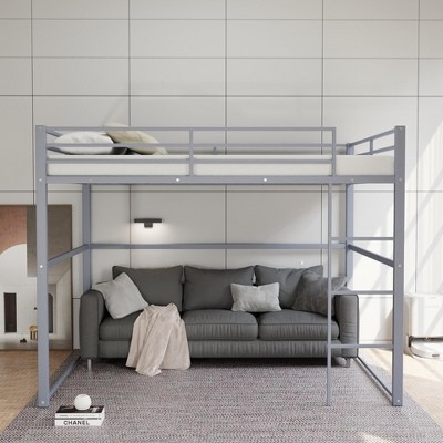 Luupatchy Metal Loft Bed, With Safety Guard Rails & Flat Ladder