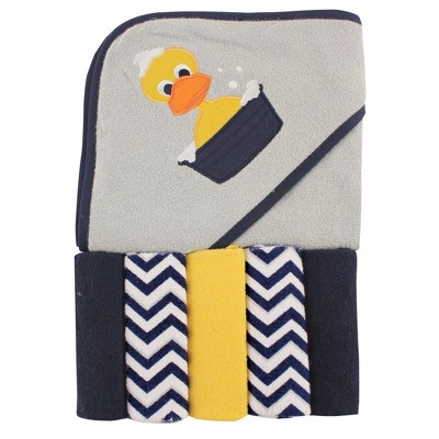 Luvable Friends Baby Unisex Hooded Towel with Five Washcloths, Duck, One Size