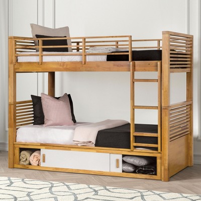 Twin Over Twin Bunk Bed with Two Drawers and Ladder