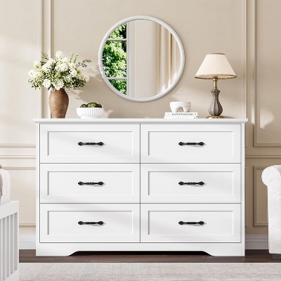 47.2" Tall Fluted Dresser, 6 Deep Drawers, Faux Marble Top & Curved Profile, Modern Wooden Storage for Bedroom/Living/Kids/Hallway