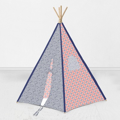 Bacati - Olivia Girls Coral Navy Play Tent for Kids/Toddlers, 100% Cotton Percale Fabric Cover