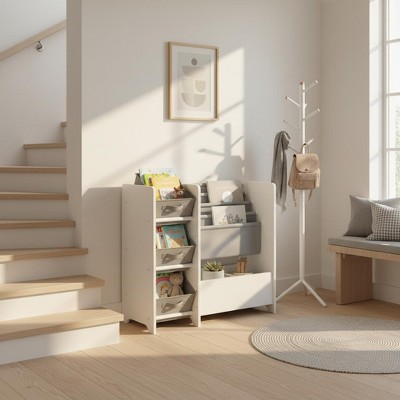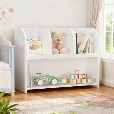 Homy Casa Kids Toy Organizer with 3 Open Compartments and 2-Tier Bookshelf for Playroom or Bedroom, White