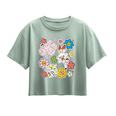 Girls' - Pokémon - Spring Stickers Short Sleeve Boxy Graphic T-Shirt