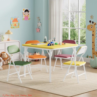 3/5 Piece Boys Girls Folding Table and Chairs Set, Activity Table and Chairs Set for Dining Room,Daycare