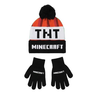 Minecraft Creeper TNT Youth Winter Hat And Knit Gloves Cold Weather Set