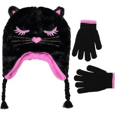 Girls Critter Winter Hat and 2 Pair Gloves or Mittens (Toddler/Little Girls)