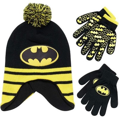 DC Comics Boys Batman Winter Hat 2 Pair Gloves or Mittens Set (Toddler/Little Boys)