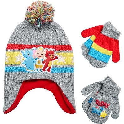 Moonbug CoComelon Boy's Fleece Lined Ear Flap Winter Hat and Mittens Set, Age 2-4