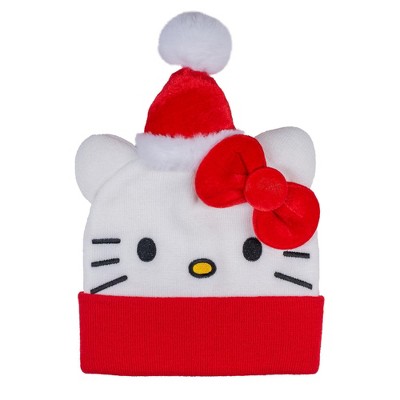 Hello Kitty Christmas Cuff 3D Beanie, Jacquard knit with Embroidered Appliques, White