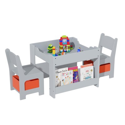 Qaba Kids Table and Chair Set for Arts, Meals, Lightweight Wooden Homework Activity Center, Toddlers Age 3+, Gray