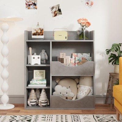 Kids Bookshelf, Toy Storage Cubby With Toy Storage Bin, 3 Storage Compartments And 2-tier Open Shelves, Toddler Bookshelf for Playroom