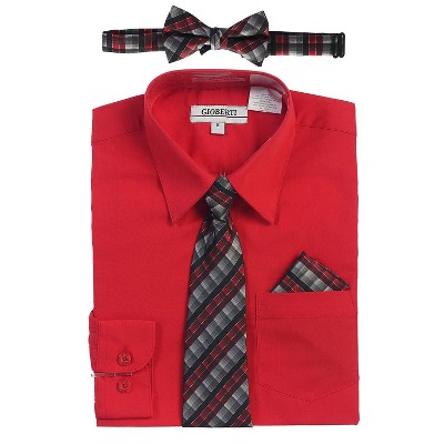 Gioberti Boy's Long Sleeve Dress Shirt and Plaid Tie Accessories Set