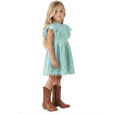 2Bunnies Girls 3T-9yr Lace Pom Pom Trim Girl Dress