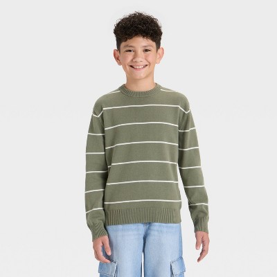 Boys' Striped Pullover Sweater - Cat & Jack™ Olive Green/Cream