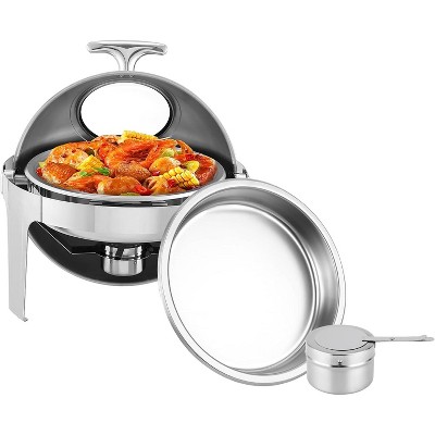 Roll Top Chafing Dish Buffet Set, 6 Qt Stainless Steel Chafer Buffet with Viewing Lid Servers and Warmers Set