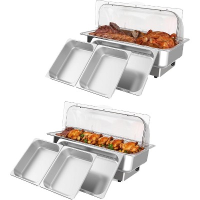 2 Pack Electric Chafing Dishes Adjustable Temp Roll Top Food Warmer with 1 Full Size Pan & 2 Half-Size Pans