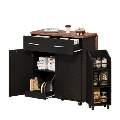Kitchen Island with Adjustable Shelves, 1 Drawer and 2 Doors