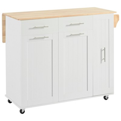 Rolling Kitchen Cart, Kitchen Island with Wood Top, Shelves & Drawers for Dining Area