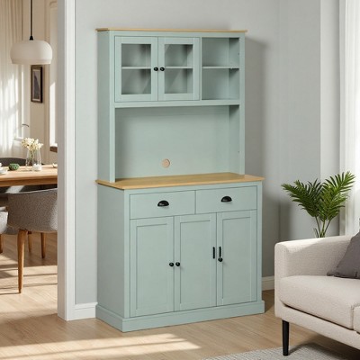 Kitchen Pantry Cabinet with Hutch, Drawers and Glass Doors