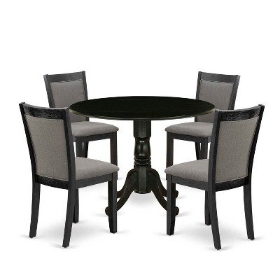 5-Piece Dining Set with Extendable Round Table and 4 Upholstered Chairs