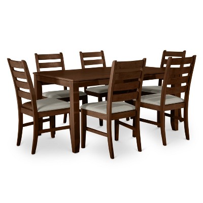 GDFStudio Isador Mid Century Modern 7 Piece Fabric Upholstered Rubberwood Dining Set