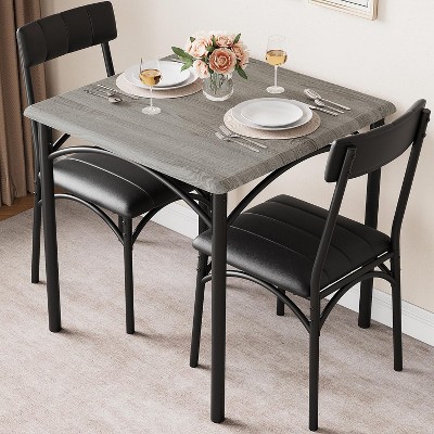 3 Piece Dining Table Set, with 2 PU Upholstered Chair