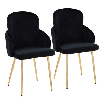 Velvet Upholstered Contemporary Dining Chair Set of 2 with Sleek Metal Legs for Dining Room or Kitchen