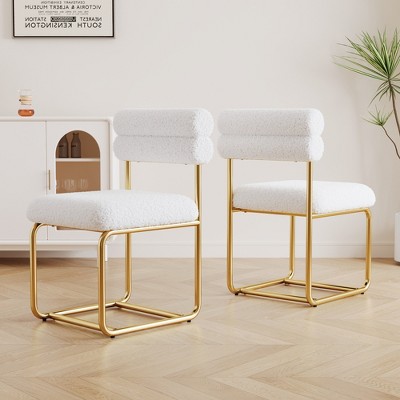 Faux Leather Upholstered Glam Dining Chair Set of 2 with Unique Metal Frame for Dining Room or Kitchen