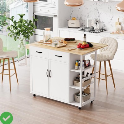 Kitchen Island with Spice Rack, Towel Rack and Solid Wood Table Top