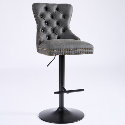 Ridstar Set of 2 Backless Leather Bar Stool-Black