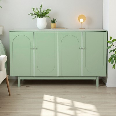 59.06" MDF 4-Door Intaglio Storage Cabinet with Pine Legs & Adjustable Shelf