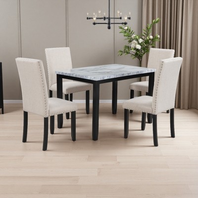 5-Piece Dining Set with MDF Table and 4 PU Chairs