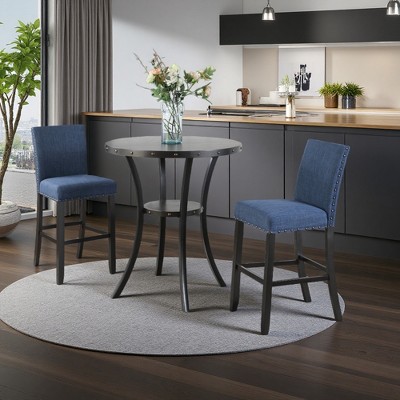 3-Piece Dining Set with Round Table and 2 Nailhead Chairs