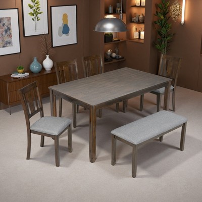 6-Piece Dining Set with Wooden Table, Upholstered Chairs and Bench