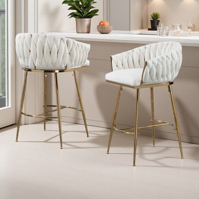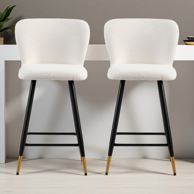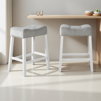 Velvet Round Back Counter Height Bar Stools with Footrest, Set of 2