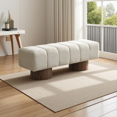 Chenille Upholstered 50" Bench with Solid Wood Legs, Single Bench