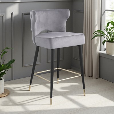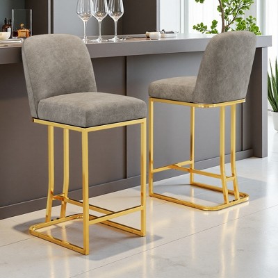 26" Velvet Bar Stools with Chrome Footrest & Metal Legs, Set of 2