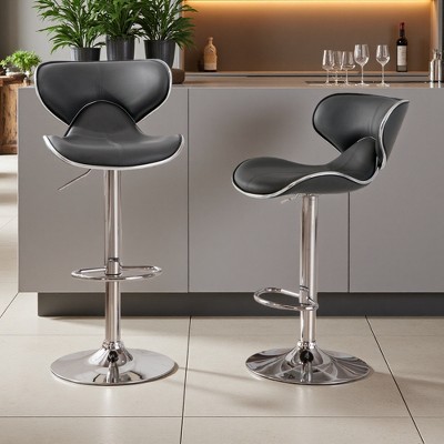 Faux Leather Adjustable Swivel Bar Stools with Chrome Base & Plush Seat, Set of 2