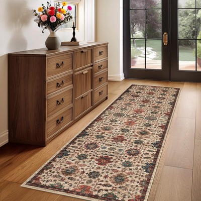 COZONY Machine Washable Vintage Floral Runner Rug for Hallway Kitchen Bathroom