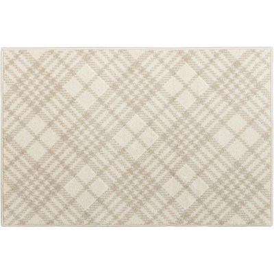 Nourison Beige Plaid Non-Skid Kitchen Washable Accent Rug Mat