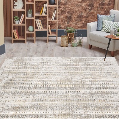 Well Woven Lezlee Grey Gold Retro Border Marble Area Rug