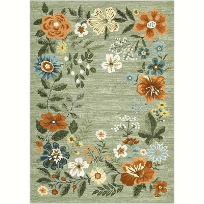 Vintage Floral Rug Thin Washable Rug with Non Slip Rubber Backing