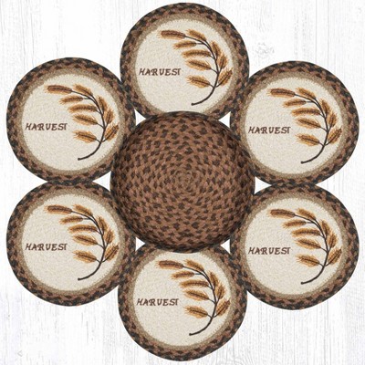 Earth Rugs Six Piece Golden Wheat Jute Trivets Set with Woven Basket